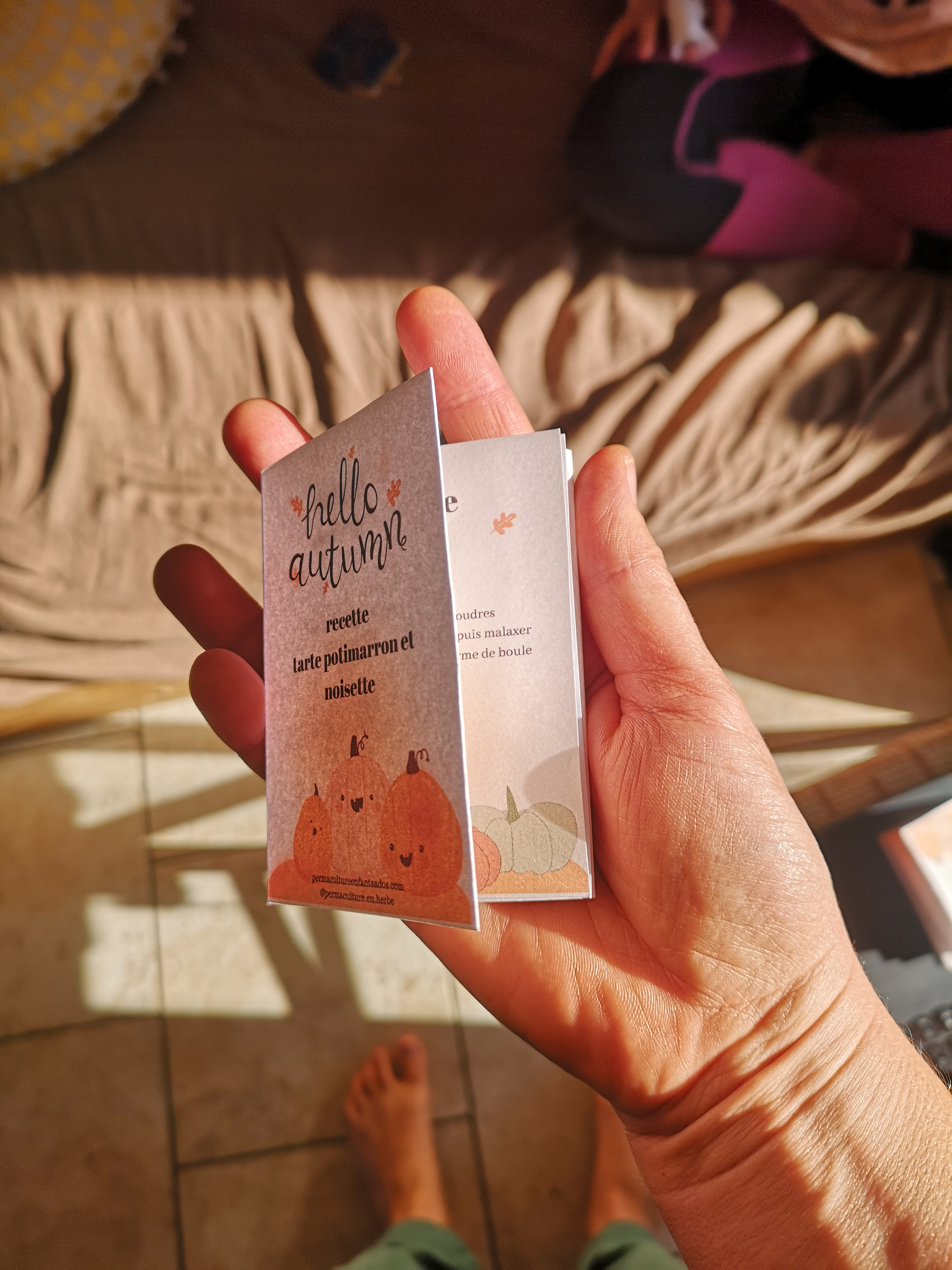 Et un peu plus bas on vous met une explication pour vous amuser à plier-découper cette page et la transformer très facilement en un petit livre mignon qui fera fondre votre cœur de potimarron.